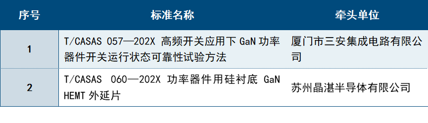2025年4月29日,由厦门市三安集成电路有限公司牵头起草的T/CASAS 057—202X《高频开关应用下GaN功率器件开关运行状态可靠性试验方法》以及由苏州晶湛半导体有限公司牵头起草的T/CASAS 060—202X《功率器件用硅衬底GaN HEMT外延片》已完成征求意见稿的编制,正式面向联盟成员单位征求意见,为期一个月。根据联盟标准化工作管理办法,2025年4月29日起开始征求意见,截止日期2025年5月29日。